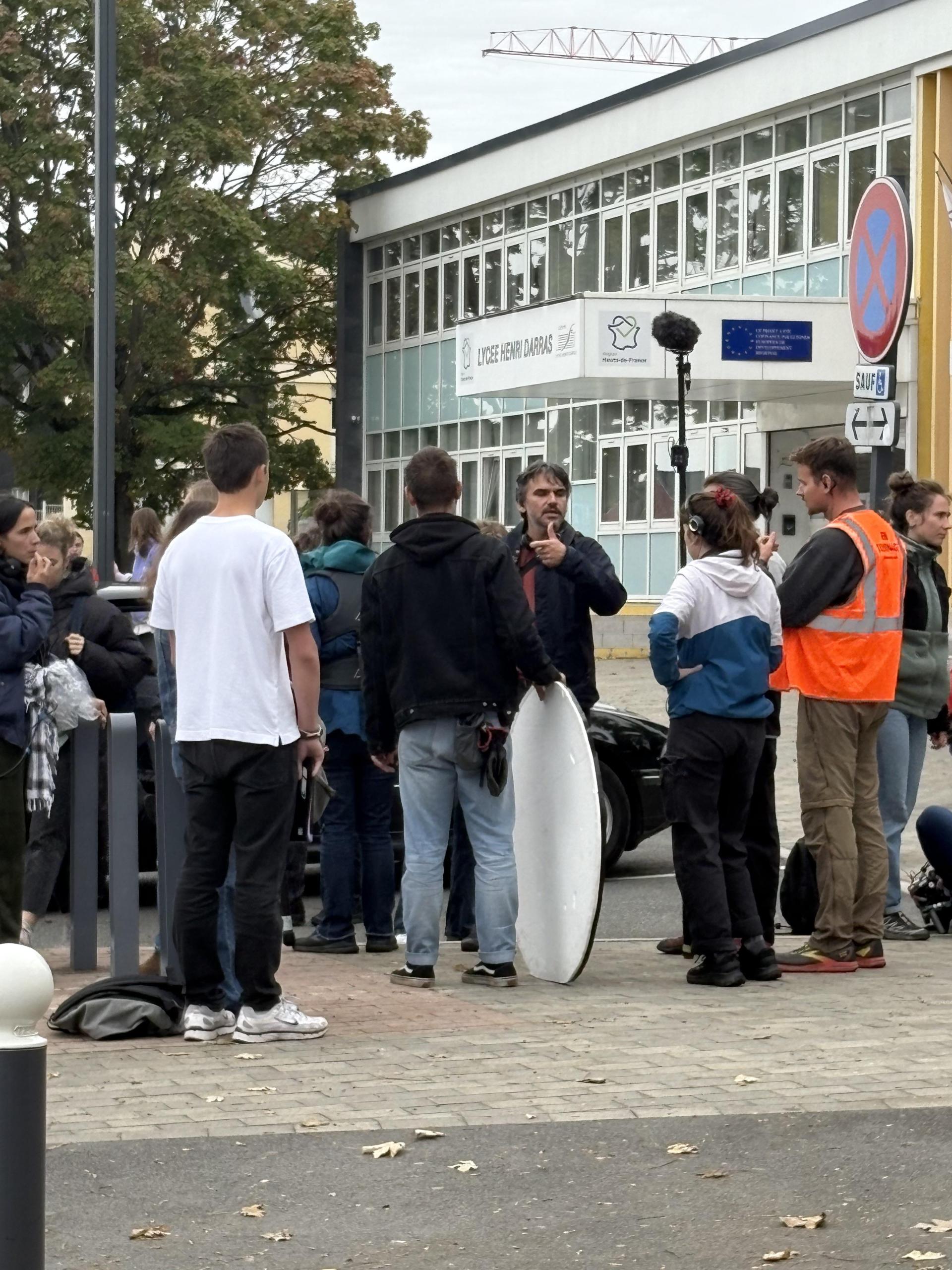 « Excusez-moi, qu’est-ce qu’il se passe ici ? Ils tournent un film ? » demandent les passants, espérant apercevoir quelques visages connus. La veille, un autre tournage se tenait devant le lycée Henri-Darras, avec cette fois la participation d’élèves liévinois en tant que figurants. Une expérience inoubliable pour Louna et Mathilde, élèves de Terminale : « C’est impressionnant de voir tout le dispositif, de découvrir l’envers du décor, expliquent-elles. Et on a même eu notre photo avec Paul Beaurepaire ! »